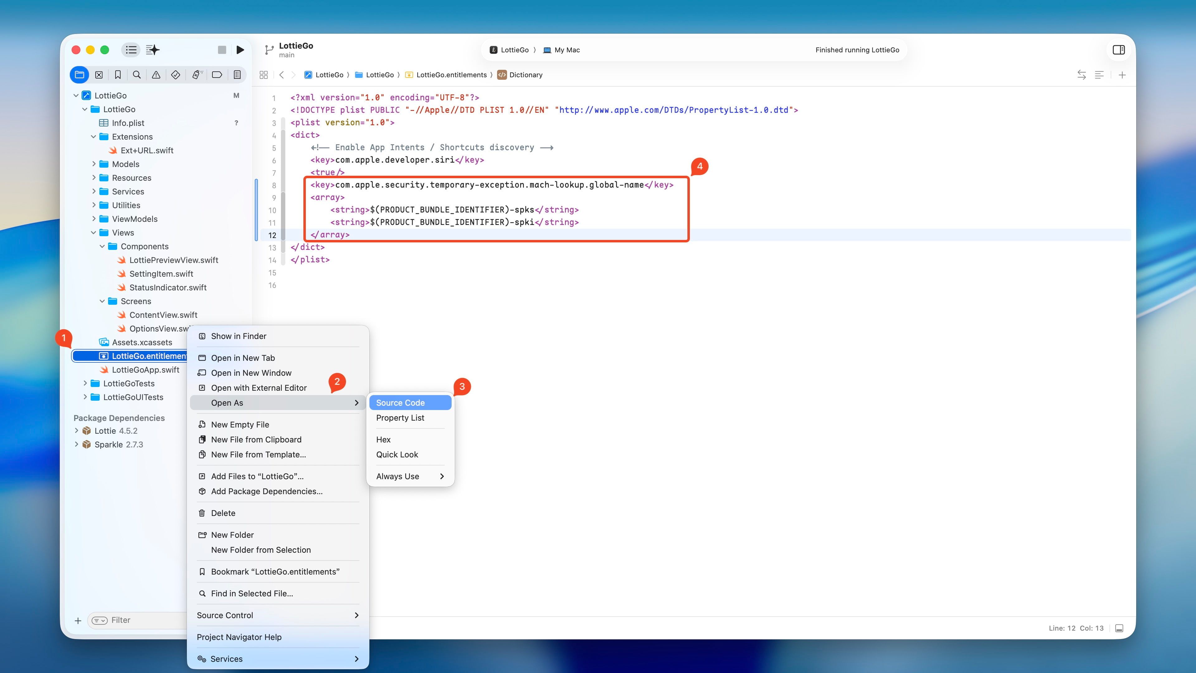 找到项目中的 .entitlements 文件,添加以下内容: