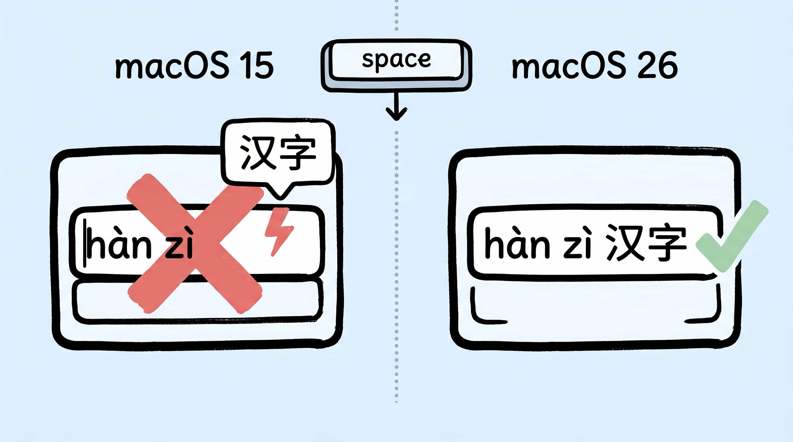 最近收到 Zipic 用户反馈:在 macOS 15.5 上,给预设方案改名时,中文输入法选不了词——拼音敲进去能看到候选,但按空格那一下,候选词就是落不到输入框里。